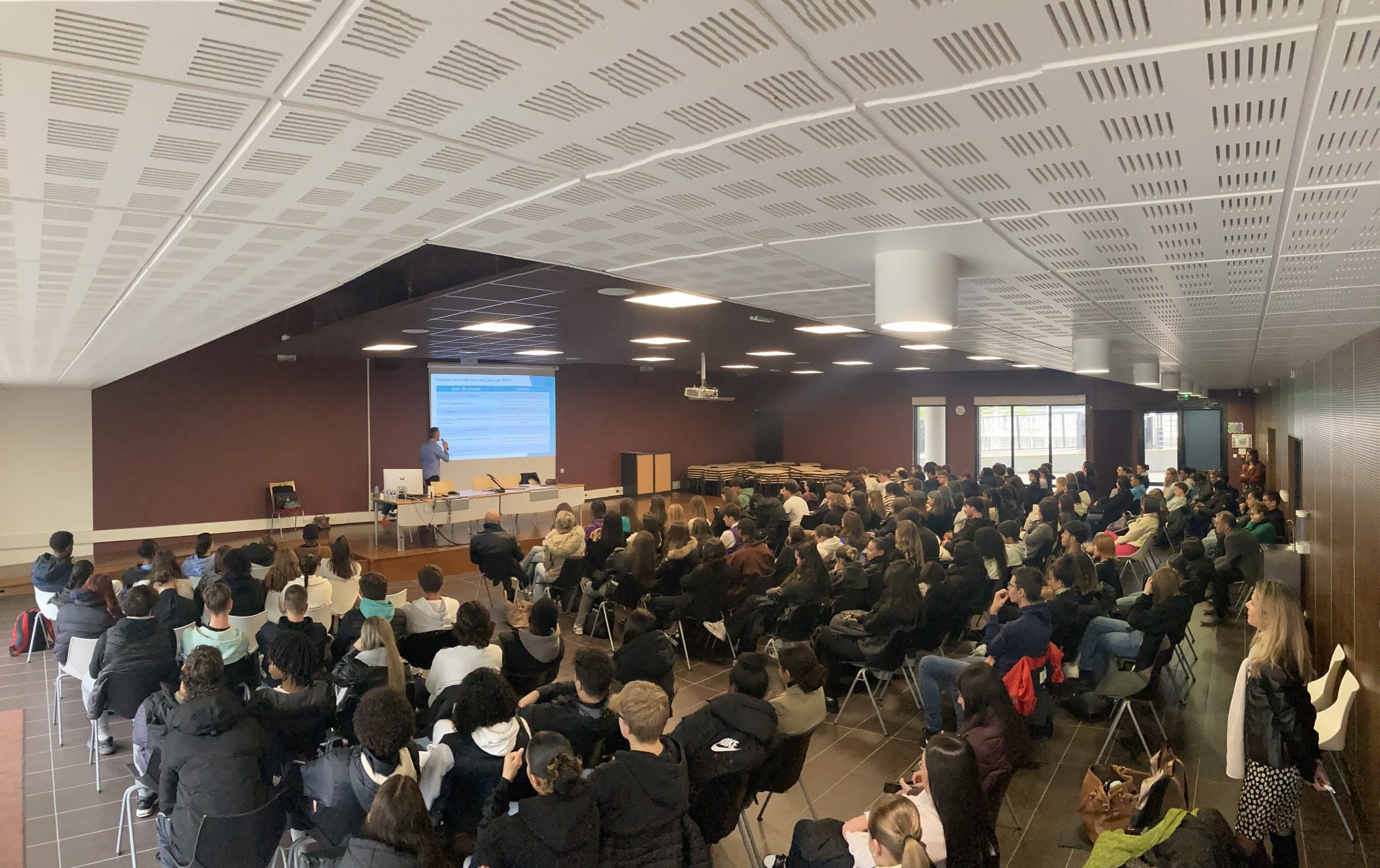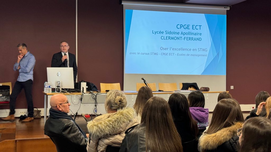 Ce jeudi 30 novembre 2023, au lycée Sidoine Apollinaire, s’est tenue une conférence destinée aux élèves de la filière STMG de l’Académie de Clermont-Ferrand sur la thématique « Pourquoi faire une grande École de Management et comment y accéder ? ».