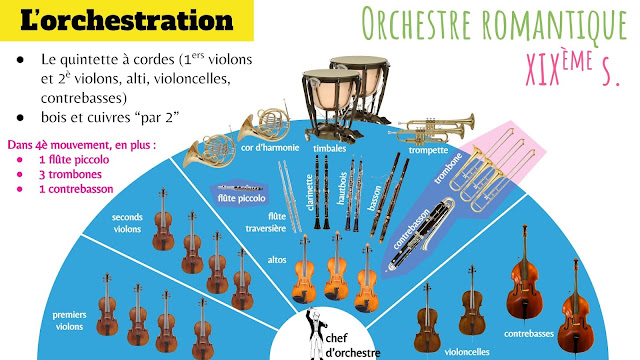 Puis s’adjoint, dans le 4è mouvement : 1 flûte piccolo, 1 contrebasson et 3 trombones.