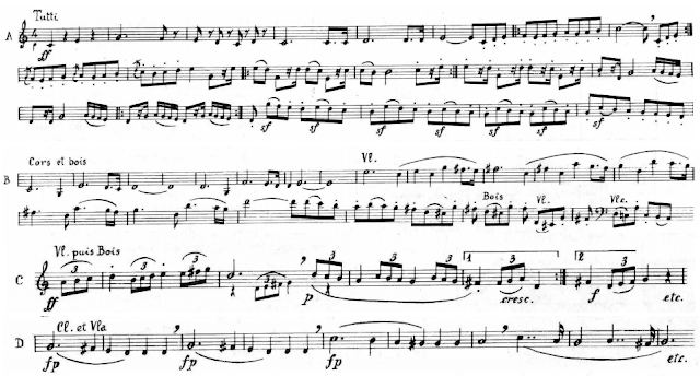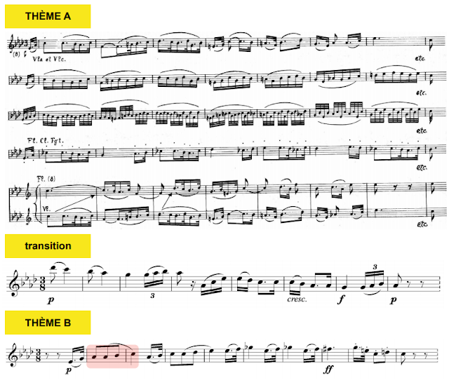 A/ Dès le début de l’exposition, l’orchestre complet attaque donc le fameux thème A