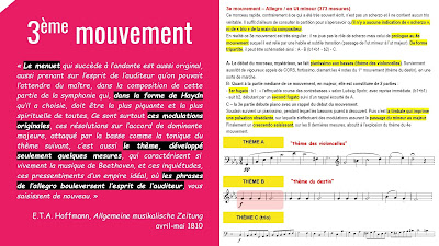 « Le menuet qui succède à l’andante est aussi original, aussi prenant sur l’esprit de l’auditeur qu’on pouvait l’attendre du maître, dans la composition de cette partie de la symphonie qui, dans la forme de Haydn qu’il a choisie, doit être la plus piquante et la plus spirituelle de toutes. Ce sont surtout ces modulations originales, ces résolutions sur l’accord de dominante majeure, attaqué par la basse comme la tonique du thème suivant, c’est aussi le thème, développé seulement quelques mesures, qui caractérisent si vivement la musique de Beethoven, et ces inquiétudes, ces pressentiments d’un empire idéal, où les phrases de l’allegro bouleversent l’esprit de l’auditeur, vous saisissent de nouveau. »