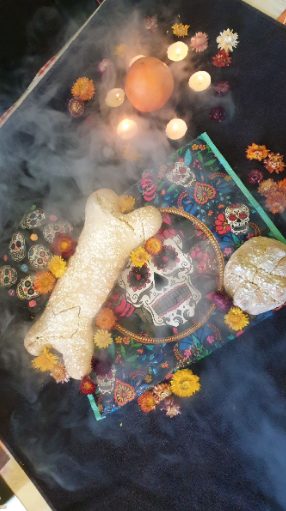 Ensuite, j’ai étudié avec l’ensemble des classes « Día de los Muertos » et nous avons appris à préparer le fameux « pan de muertos ». Afin de renforcer l’apprentissage, j’ai lancé un concours inter-classes pour réaliser la recette et mettre en scène de manière originale le gâteau. Les élèves se sont montrés très créatifs et ont pris de belles photos de leurs réalisations. C’est par ici :