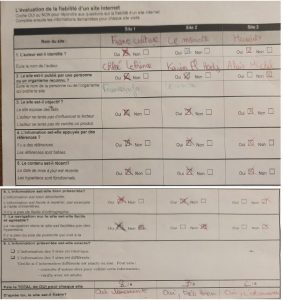 Après avoir complété la grille d’évaluation de la fiabilité des sites (voir ci-dessus), les élèves ont rédigé un paragraphe pour répondre à la