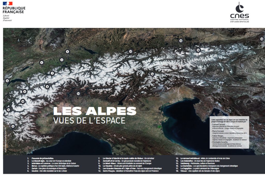 ■ Une exposition intitulée Les Alpes vues du ciel conçue par le groupe Géoimage sous la direction de Laurent Carroué dans le cadre du FIG 2024 : (téléchargement libre) https://pedagogie.ac-toulouse.fr/hgemc/exposition-les-alpes-vues-du-ciel-presentee-au-festival-international-de-geographie-de-saint-die