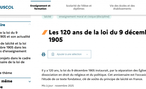 Appel à projet du CM1 à la Terminale - projet à déposer avant le 16 janvier 2026 Citoyenneté Une Les 120 ans de la loi du 9 décembre 1905