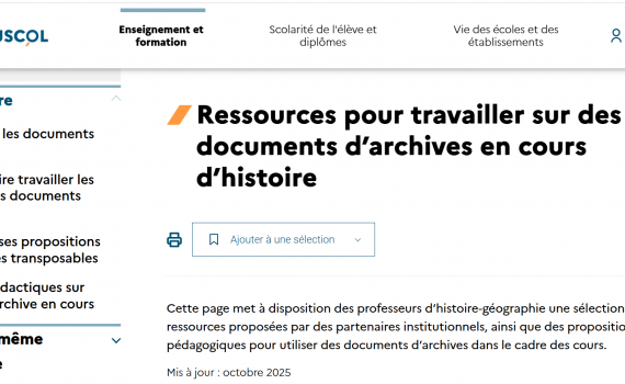 Page Eduscol mise à jour en octobre 2025 Actualités Eduscol Une Ressources pour travailler sur des documents d’archives en cours d’histoire