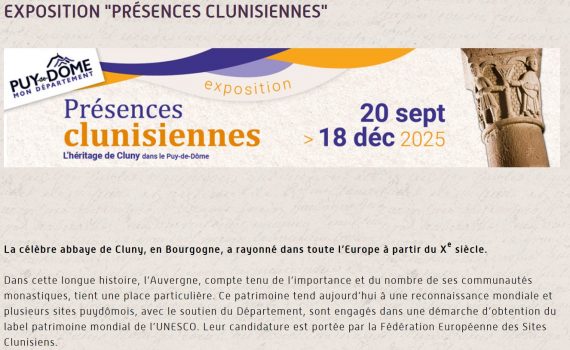 proposée par les Archives départementales du Puy-de-Dôme du 20 septembre au 18 décembre 2025 Ressources patrimoine local Structures éducatives Une Exposition « Présences clunisiennes »