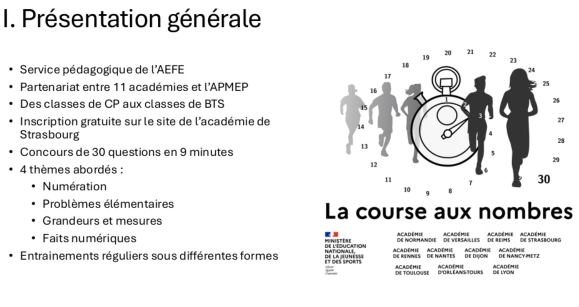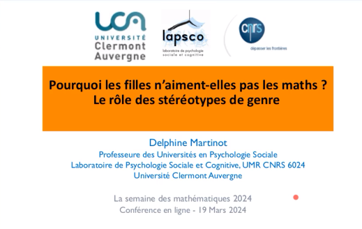 Semaine des maths 2024 Archives vidéo 2024 Vous pouvez visionner les conférences 2024 en cliquant sur les vignettes ci-dessous. Mathématiques et cartographie Course aux nombres ASM et Mathématiques Filles et maths