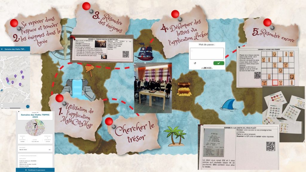 Jeudi 9 Mars, en co-intervention Maths-Enseignement professionnel, les élèves de Terminale Bac Pro Service sont partis à la chasse au Trésor. Consigne avait été donnée de suivre le fil rouge… Mais encore fallait-il résoudre tout un lot d’énigmes combinant les Maths et le Service, disséminées dans l’enceinte du Lycée afin de libérer des indices conduisant à la cachette tant convoitée…