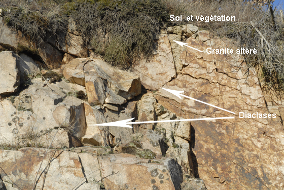 - Granite altéré, fissuré et humide sur l’affleurement S1