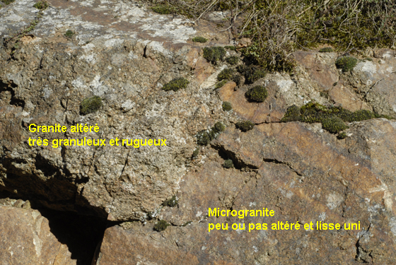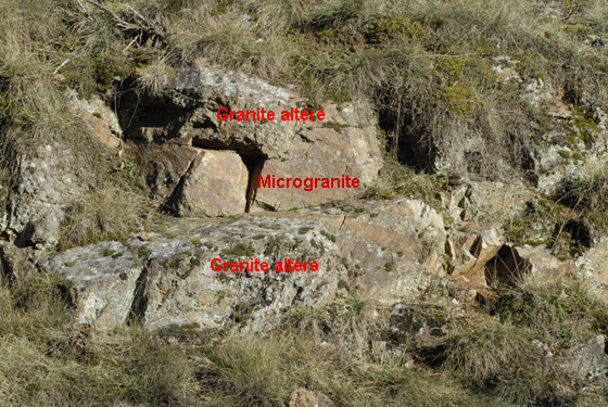 - Contact entre granite altéré et microgranite (détails de l’affleurement) – légendes