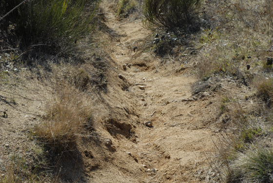 - Chemin de randonnée raviné et creusé dans le granite altéré