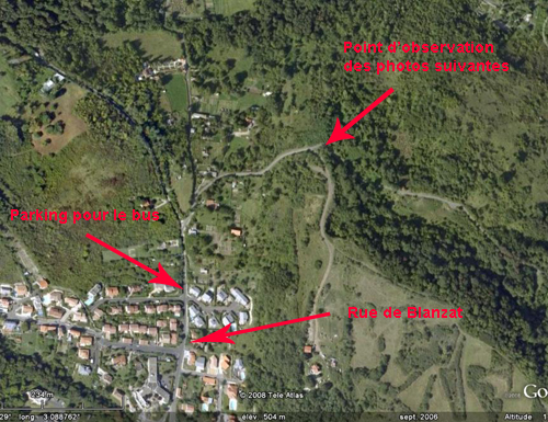 - Parking pour le bus : vers le haut de la rue de Blanzat, à gauche, juste après le carrefour avec la rue M. Cousserand, faire faire demi-tour au bus à la hauteur de ce carrefour et le faire se garer prêt à redescendre.