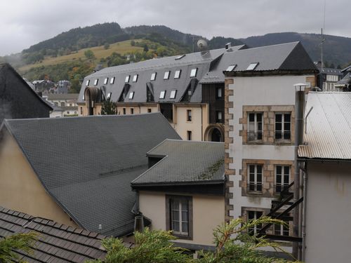 - La formation volcanique intra-caldeirique se compose d’une séquence ignimbritique en contact vertical avec le socle, affectée partiellement par une altération hydrothermale qui a entraîné une induration de la séquence. Les ponces, fragiles, ont souvent disparu, laissant place à des vacuoles d’échelle centimétrique qui trouent régulièrement la roche. Cette roche claire, vacuolaire mais dure a servi à la construction de nombreuses maisons de La Bourboule. On l’observe notamment sur les encadrements de fenêtres.