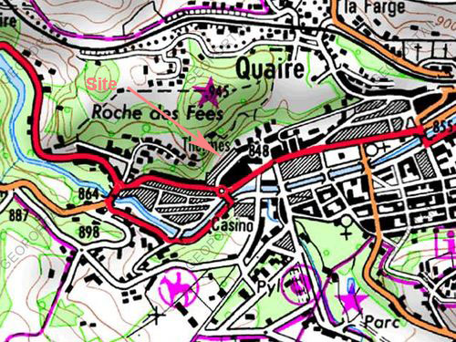 A l’entrée de La Bourboule (en remontant la Dordogne) se garer à droite après le premier rond point ; le site à observer se trouve sur la gauche derrière l’établissement thermal.