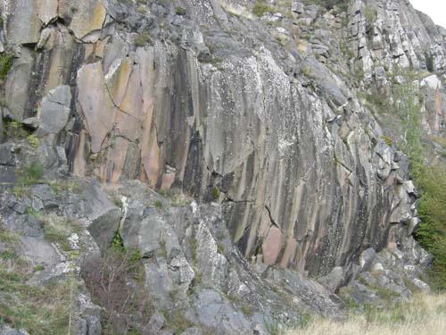 Prismes verticaux : les élèves peuvent réaliser un schéma du front de la carrière en délimitant les colonnes de basalte