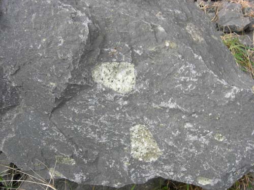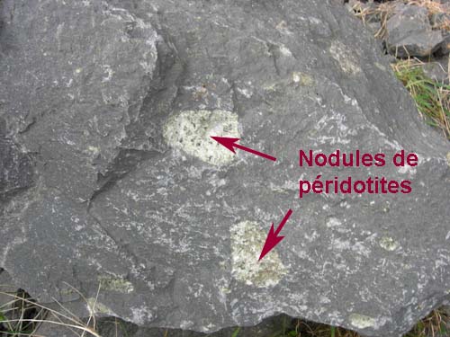 Un bloc de basalte contenant des nodules de péridotites : la question de l’origine de cette péridotite peut-être posée