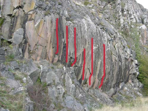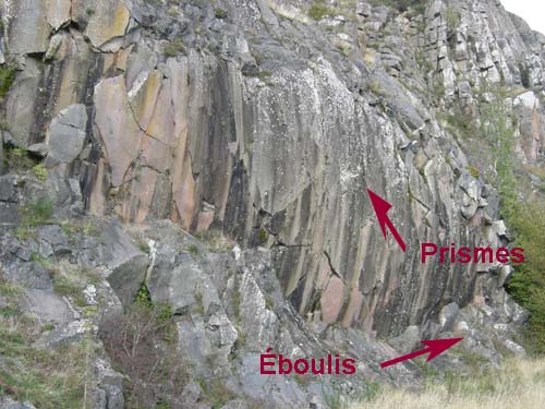 Prismes verticaux : les élèves peuvent réaliser un schéma du front de la carrière en délimitant les colonnes de basalte