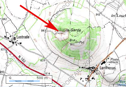 Le cône strombolien de La Garde à proximité de Lanthenas est exploité par une carrière de pouzzolane. Elle peut être visitée avec des élèves après avoir pris contact avec l’exploitant. Les activités proposées peuvent être facilement transposables à d’autres sites.
