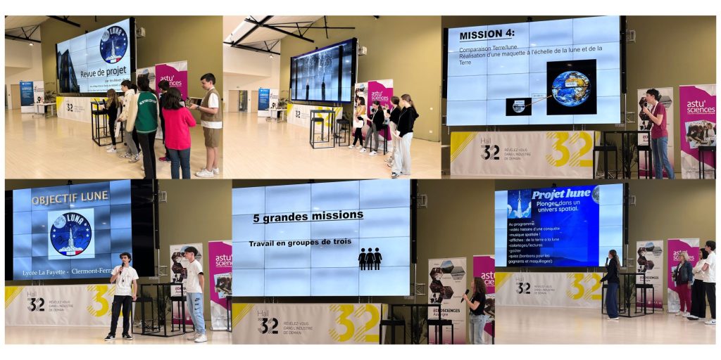 Dans le cadre de la Clermont Innovation Week 2024, les 220 élèves des cinq établissements* en projet dans Yes We Code ! Mission Luna se sont rassemblés le 8 avril 2024 au Hall 32 pour vivre une journée palpitante.