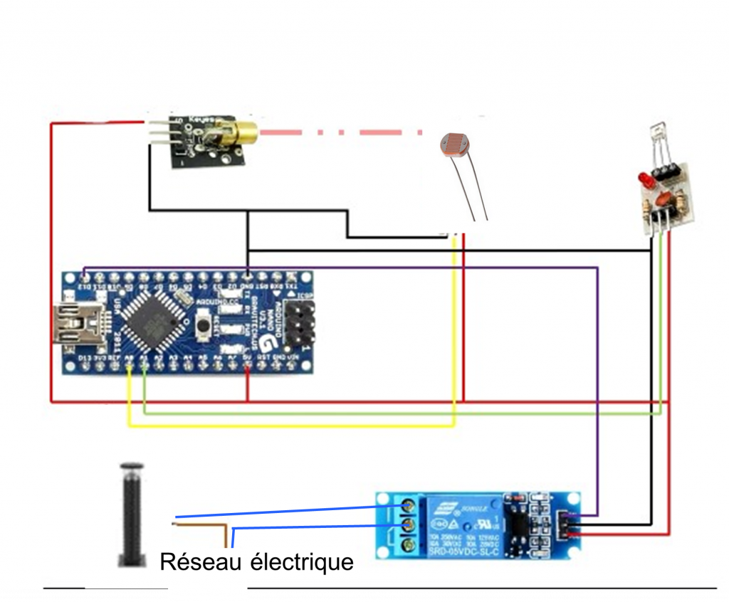• Déclenchement par détecteur de présence + photorésistance