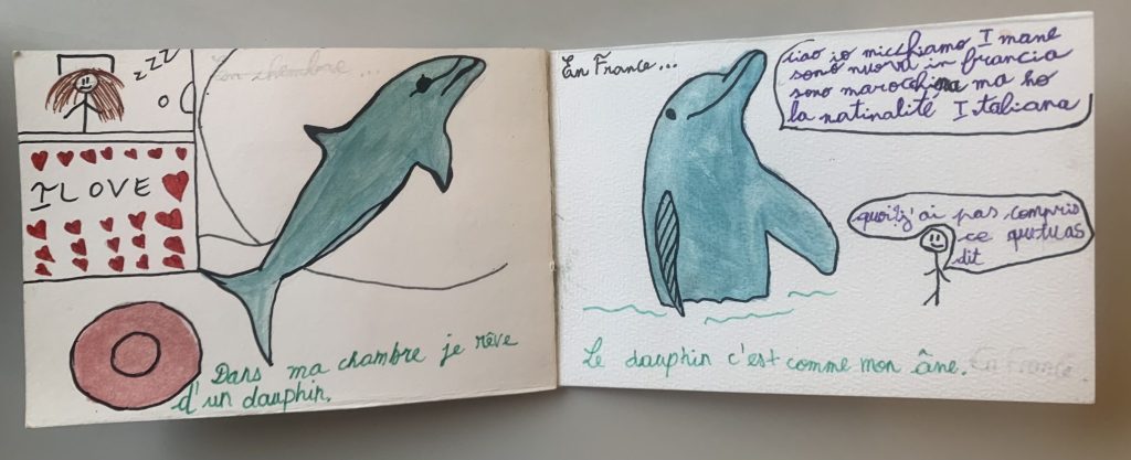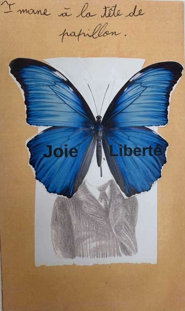 N’oubliant pas les talents d’illustratrice de l’autrice, les élèves ont également travaillé autour d’un dessin surnommé « L’homme à la tête de feuille » ; après avoir proposé leur interprétation, ils ont imaginé l’objet ou le sentiment qui symboliserait leur tête et leurs pensées ; ce fut l’occasion de découvrir Keylane à la tête de livre, Imane à la tête de papillon ou encore Emre à la tête du bonheur.