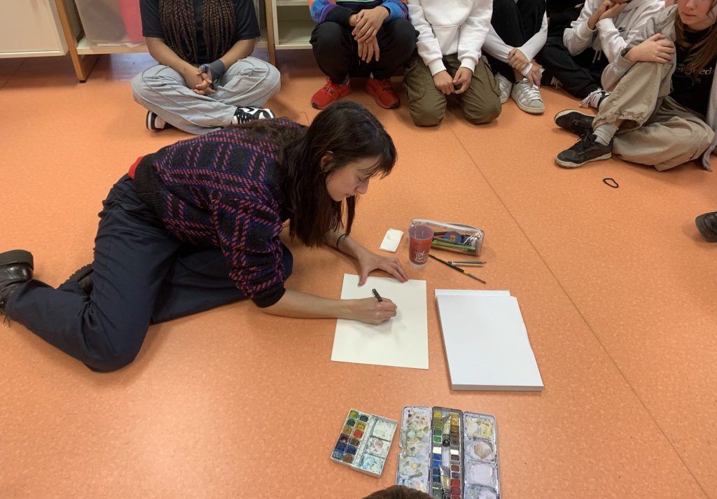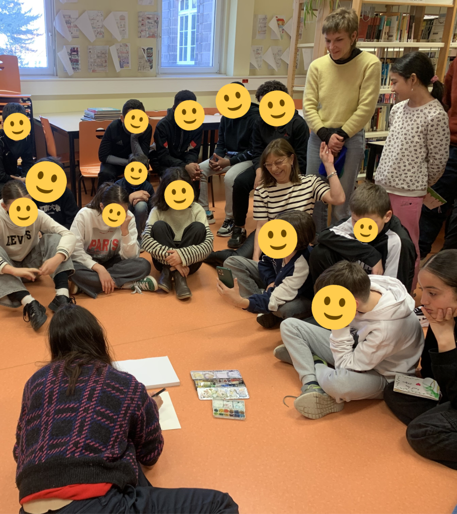 Jeudi 20 mars, l’illustratrice, autrice et poétesse Sara Gréselle est arrivée au collège, en même temps que le soleil de printemps, pour un moment de partage sous le signe de la poésie et du dessin. Les élèves du dispositif UPE2A lui ont réservé un accueil chaleureux au CDI, accompagnés de leurs professeures Mmes Tournayre, Laversin et Chevrier, et de la documentaliste. Une classe de 5ème de l’établissement a également eu le privilège de rencontrer notre invitée.