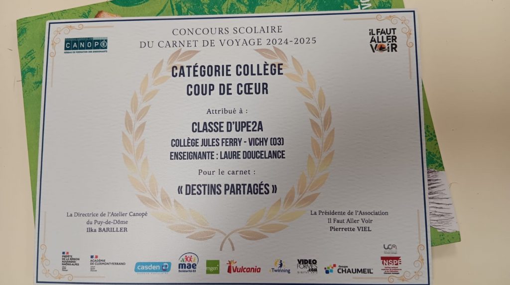 Les élèves de l’UPE2A du collège Jules Ferry, à Vichy, sont au palmarès du concours scolaire du carnet de voyage 2024-2025.