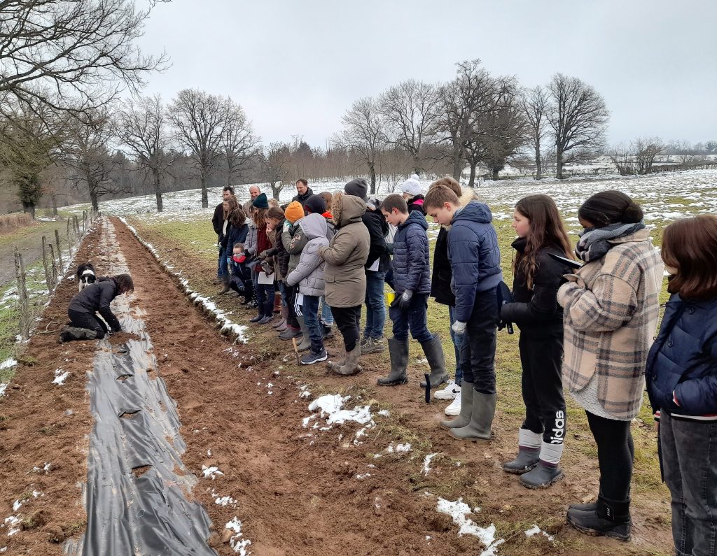 Les élèves ont ensuite aidé à planter une haie qui contribuera également à soutenir la biodiversité locale. Une expérience de terrain pour les élèves de l’EDD, au plus près des personnes impactées par le dérèglement climatique et qui trouvent des solutions pour s’adapter.