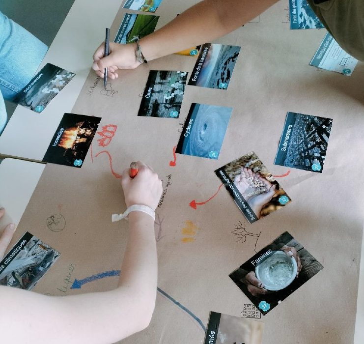 • une partie de réflexion qui les a amenés à comprendre les liens entre les cartes du jeu de la Fresque du climat,