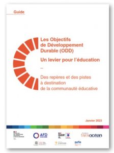 le guide « les ODD, un levier pour l’éducation – des repères et des pistes à destination de la communauté éducative » , initiée et pilotée par la Fondation Tara Océan, résultat d’un travail collaboratif avec l’Agence de la transition écologique (ADEME), l’Agence française de développement (AFD), l’Office for Climate Education (OCE), l’Agence pour l’enseignement français à l’étranger (AEFE), la Fondation La Main à la Pâte. Réalisé dans le cadre du partenariat avec le ministère de l’éducation nationale.