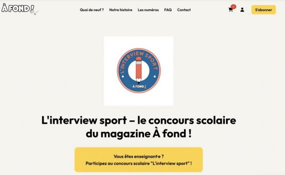 Le magazine A fond ! s’associe avec le CLEMI pour un nouveau concours proposé du CP à la 5ème consacré à l’interview sportive. Toutes les infos à retrouver ici sur le site du CLEMI et sur la page du magazine : Règlement du concours