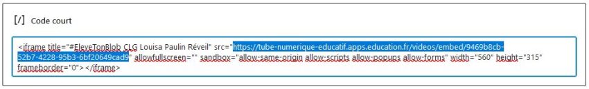 Coller le code récupéré sur Tubes et ne conserver que la partie surlignée dans l’image ci-dessous.
