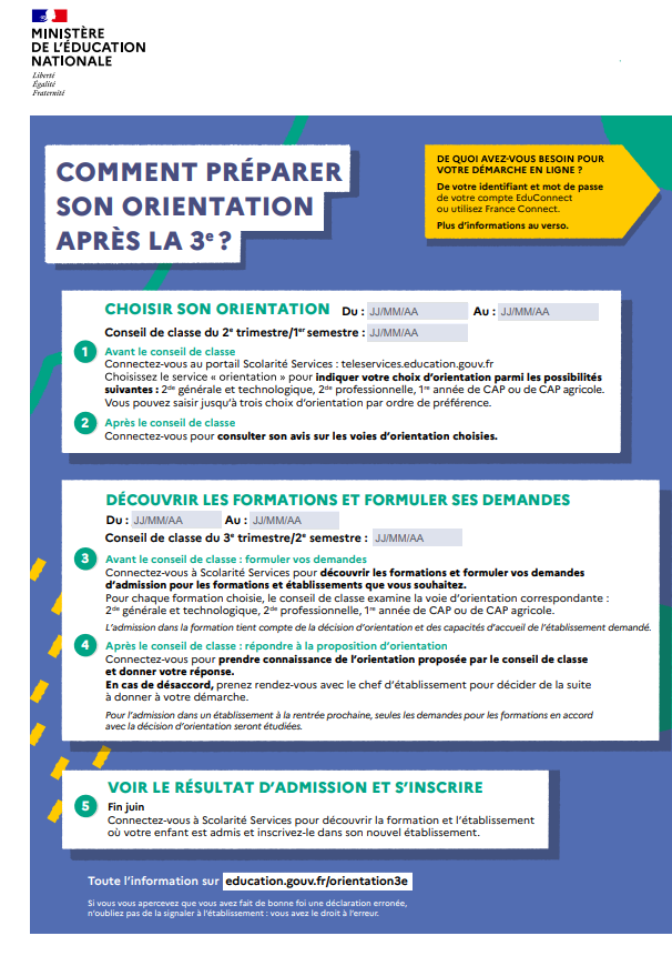 - Pour la classe de 3e: le flyer et le guide national.