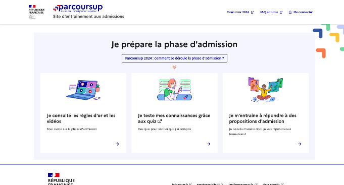 Le site d’entrainement permet de découvrir le fonctionnement de la procédure, notamment en expérimentant la phase d’admission : https://entrainement.parcoursup.fr/Candidat/authentification?ACTION=31