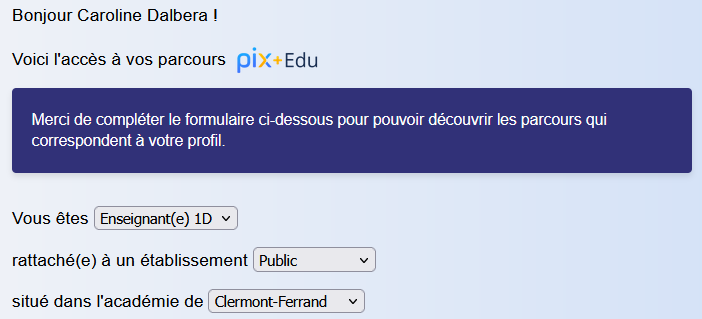 Identifiez-vous avec vos identifiants académiques puis le parcours apparaîtra : vous pourrez alors indiquer que