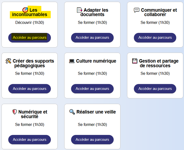 Cliquez ensuite sur LES INCONTOURNABLES > Accéder au parcours pour créer votre compte PIX