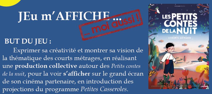 Ce jeu est ouvert aux classes, de la PS à la GS, inscrites au dispositif Maternelle au cinéma Cantal et ayant vu le programme de courts métrages Les petits contes de la nuit.