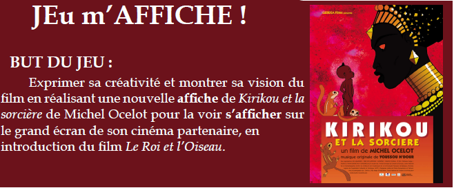 Ce jeu est ouvert aux classes, de la GS au CM2, inscrites au dispositif École et cinéma Cantal et ayant vu le film Kirikou et la sorcière.