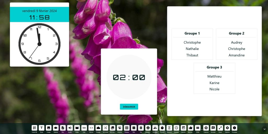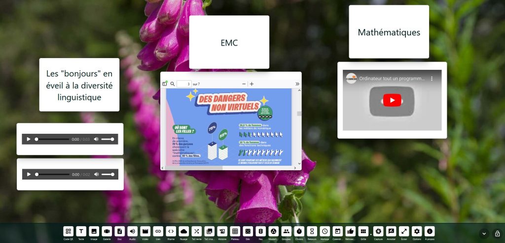 permet d’utiliser en temps réel (en ligne) un fond d’écran pouvant contenir différents outils (widgets) utilisables au quotidien dans la classe :