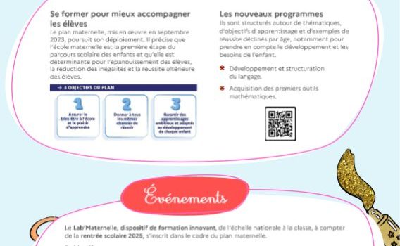 Rédigée par le groupe de travail académique Lab’Maternelle (réunissant six conseillères pédagogiques des quatre départements et l’IEN académique en charge de l’école maternelle). Au sommaire : actualité, événements marquants, témoignages inspirants et sélection de ressources dédiées à l’école maternelle.